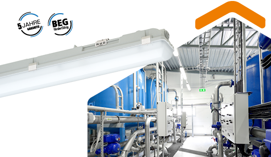Die preiswerte Feuchtraumleuchte LUXANO 2 besticht neben ihrer Langlebigkeit und der vergleichsweise hohen Effizienz insbesondere durch Variabilität: Mit einer einzigen Leuchtentype werden konventionelle Typen von 1x36 W bis 2x58 W ersetzt – das ist in höchstem Maße wirtschaftlich, extrem flexibel, und ermöglicht eine maximale Standardisierung kombiniert mit einer optimalen Lagerhaltung. Highspeed-Montage? Kein Problem mit der komplett vormontierten FC-Ausführung.