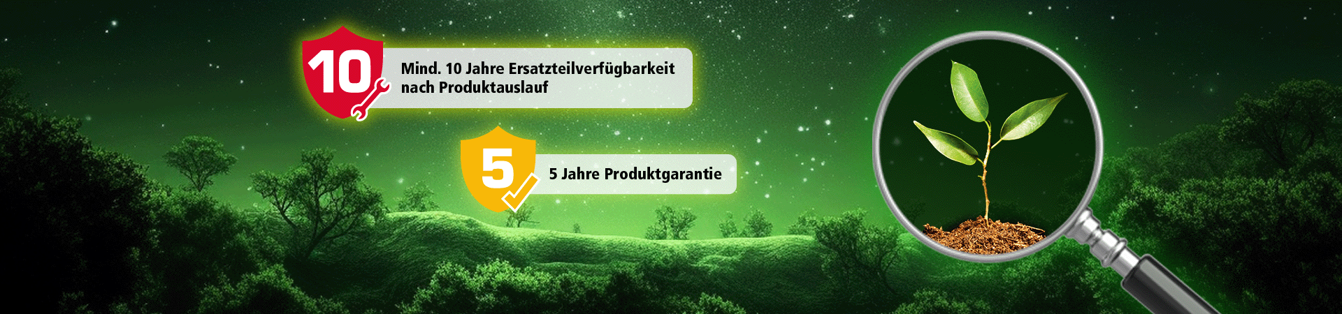 Und wir gehen noch einen Schritt weiter: Selbst nach Produktauslauf garantieren wir Ihnen eine Ersatzteillieferung für mindestens 10 weitere Jahre.